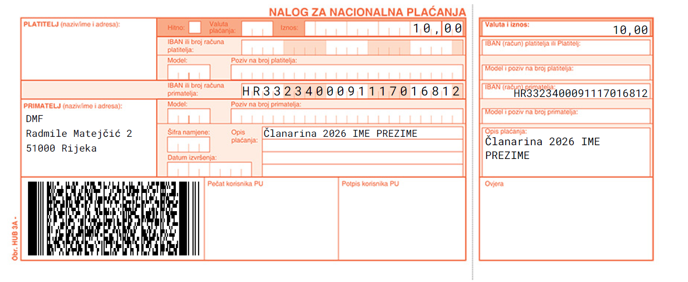 Uplata članarine za DMF Rijeka